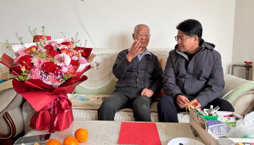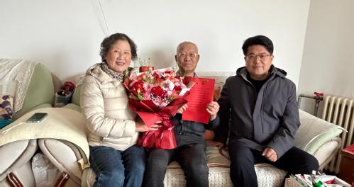 12月23日上午,教学院部退休职工第五党支部走访慰问光荣在党70周年的老党员衡九一,传递党组织的关怀与温暖,支部邀请离退休工作处党委书记、处长张旭东一同参加慰问。